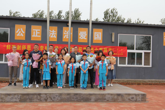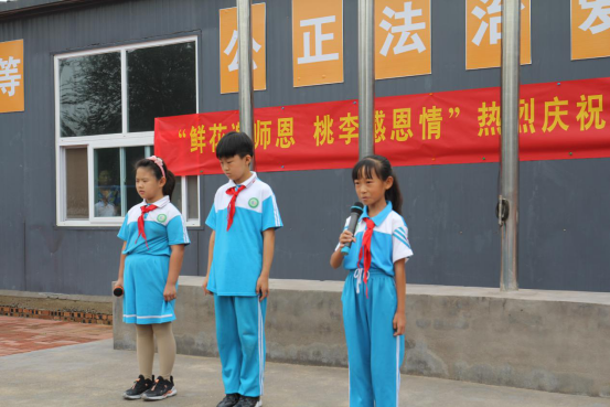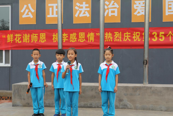 教师节当天,学校举行了升旗仪式,经过选拔三、四、五年级的学生们怀着对老师无比崇敬,用诗歌朗诵的形式淋漓尽致地表达了对老师的爱。同学们满怀谢意,为老师们献上了一首首深情祝福的诗句。