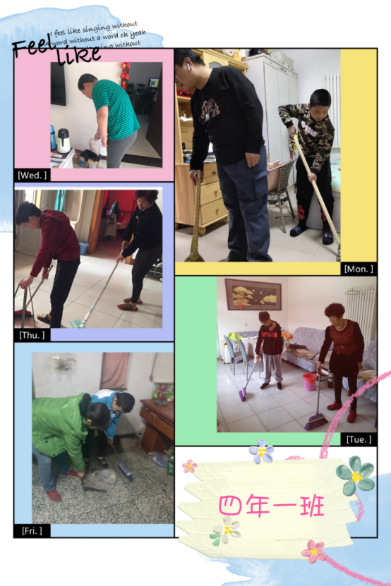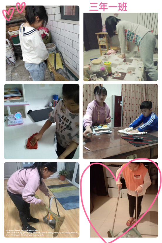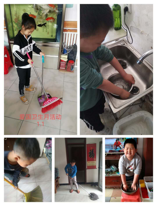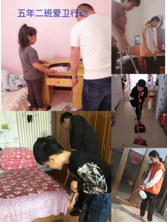活动中同学们积极参与,在家里“小手拉大手”,积极搞好个人卫生同时,与家长一起对居室内外、房前屋后卫生进行了大扫除,清除卫生死角,通风换气,科学消毒消杀,做到了居家环境干净整洁。进一步增强了劳动意识与劳动能力,培养主动做家务、维护家庭清洁的好习惯。