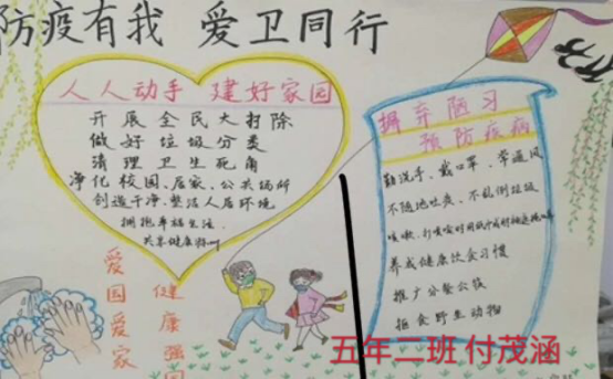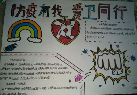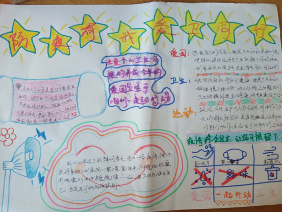 “我是卫生防控宣传员”,学生们积极制作手抄报,从个人卫生、饮食卫生、居家卫生等方面向家人宣传,增强家人的卫生意识。